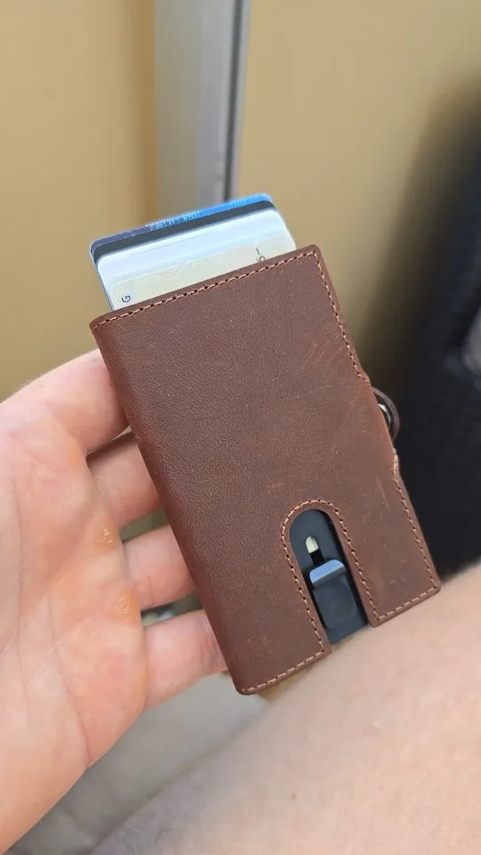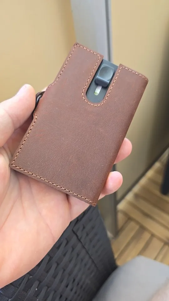 Crafted from genuine cow leather with a precision-built aluminium core, this slim smart wallet offers the perfect blend of luxury, security, and practicality.
